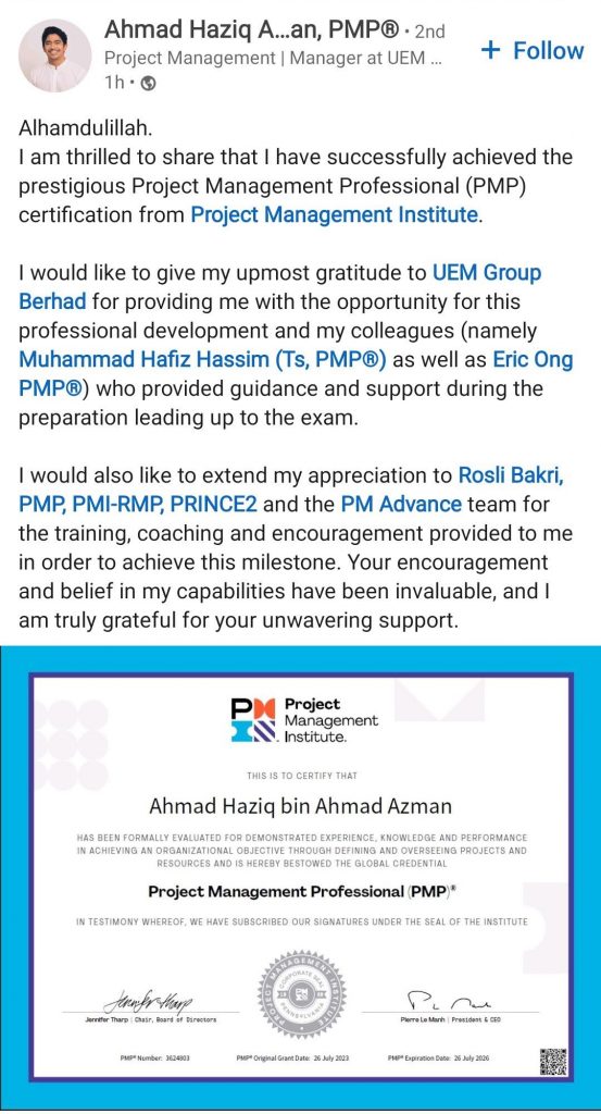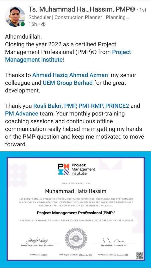 PM Advance philosophy is to train and consult professionals not only based on theoretical knowledge, but also based on real-case scenarios and PM practitioner experience. This will effectively impart the knowledge and the best practice skills to professionals in their daily work in respective industry.