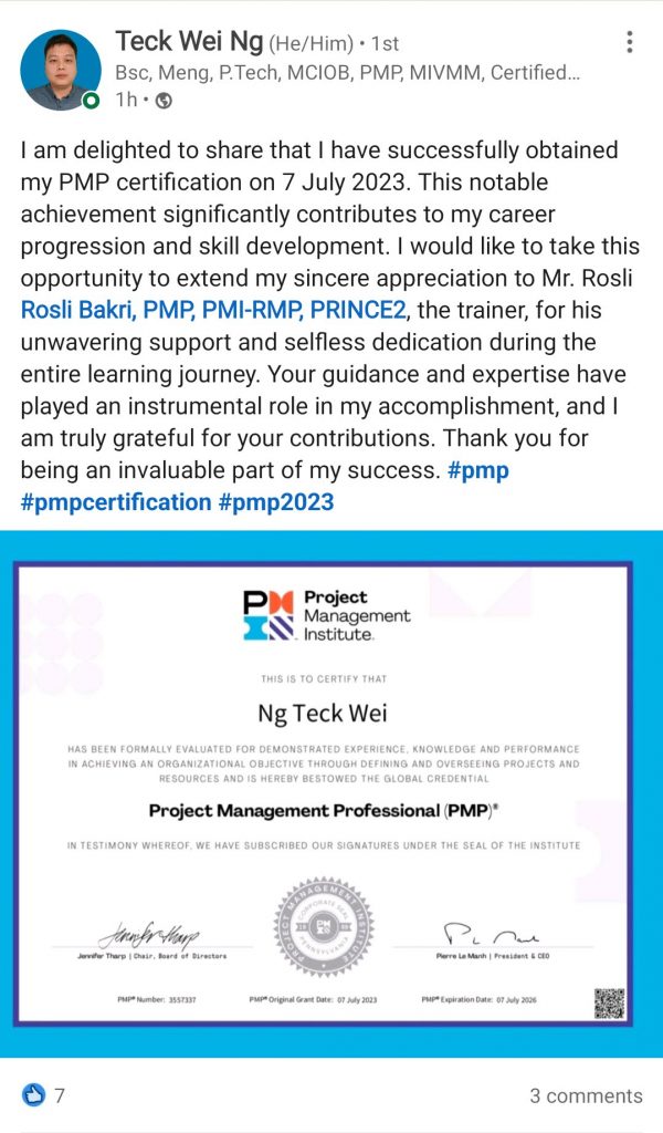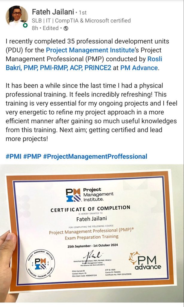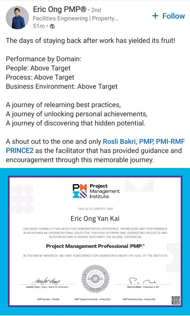 This 5-day program will be based on new PMP ECO (Exam Content Outline) which starts from January 2021, and it enables candidates to develop professionally, increase their project management skills, apply formalized and standard-based approach to project management, and seek career advancement by moving into formal project manager role, as well as to prepare and apply for the Project Management PMI’s Project Management Professional (PMP)® certification Exam. The skills and knowledge you gain in this course will help you avoid making costly mistakes and increase your competitive edge in the project management profession.